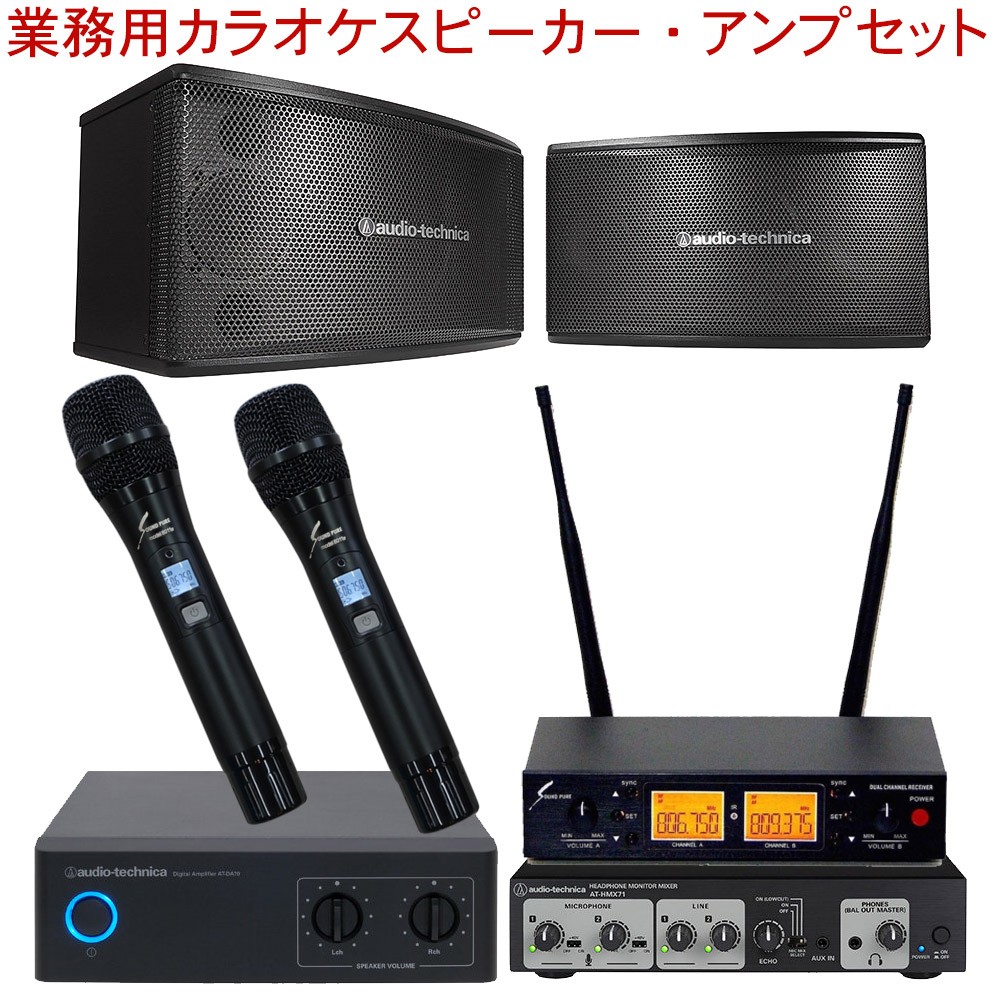 audio-technicaの業務用カラオケスピーカー・アンプ・ミキサーセット業務用スペックの赤外線ワイヤレスマイク2本付き【セット内容】audio-technicaスピーカー×2/audio-technica デジタルパワーアンプ×1/スピーカーケーブル10m×2/audio-technica マイクミキサー×1/接続用ケーブル/赤外線ワイヤレスマイク×2/ワイヤレス受信機/赤外線受光器/マイク充電スタンド【ご確認ください】※本セットではマイクの音をスピーカーから出力できる機器の構成です。カラオケをする為には別途カラオケ機やCDプレイヤー、カラオケアプリを搭載したスマートフォンやゲーム機等が必要となります。※製品の仕様及びデザインは改良のため予告なく変更することがあります。※こちらの商品は店頭及び他のショッピングサイトでも販売を致しております。タイミングによっては売り切れの場合がございます。ご注文時に売り切れの場合は、お取り寄せにお時間を頂くこととなります。予めご了承下さい。爆買