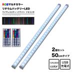 間接照明やアウトドア、ショーケースなどに使える便利なリモコン付きバッテリー内蔵ライトリモコン付 スティックライト LED 50cm 2本セット RGBカラー Micro USB充電式 バッテリー内蔵 ワイヤレス バーライト 調光 インテリア フットライト 照明◆◇◆ Fulic RGBマルチカラー LED スティックライト ◆◇◆多用途に使える便利なリモコン付きバッテリー内蔵ライト用途方法:家具 階段 玄関 物置 倉庫 コレクションケース コレクションラック ショーケース ディスプレイケース コレクションボード フィギュアケース カラーボックス ベッド 寝室 押入 クローゼット シューズクローク キッチン 台所 キャンプ アウトドア 防災 緊急時 非常用 ランタン 車庫 廊下 トランク など「リモコンでお手軽操作」「取付簡単マグネット内蔵」「リチウムイオン蓄電池内蔵」外寸:長さ50cm、横幅1.9cm、高さ1.7cm電球タイプ:LEDライトワット数:2ワット明るさ(ルーメン):390LM機能 常時点灯/多色/調光/リモコン付/充電式充電方式:Micro USBセット内容:LEDライト本体1台、USBコード1本、プレート2枚、リモコンをそれぞれ2個セット