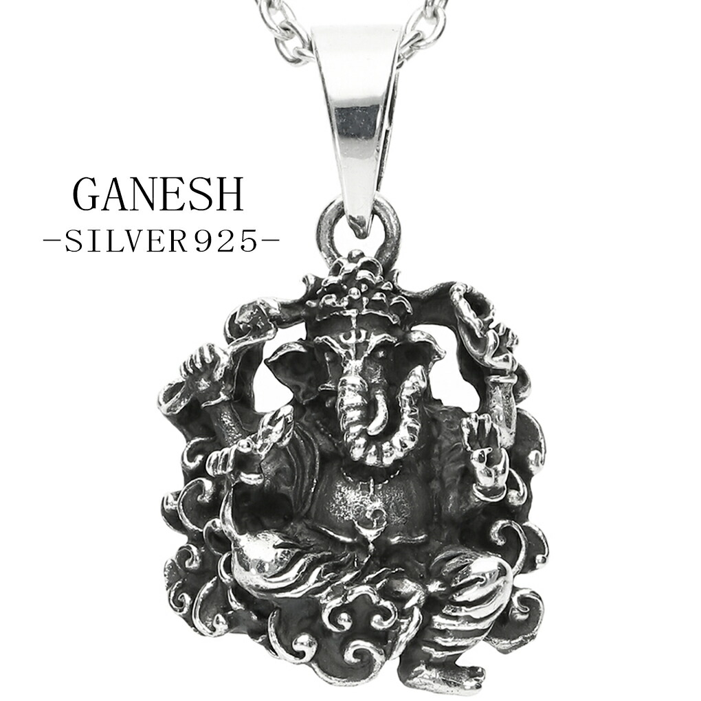 【シルバーネックレス】 メンズ レディース ペンダントヒンドゥー教の神の一柱であるガネーシャをかたどったシルバー製ネックレス。縦2.4cmの大きさに、顔や装飾品、服のシワなどが細かく造形されています。商売繁盛と学問の神とされるガネーシャ。個性と存在感を主張できる一品です。商品データ・商品番号 [TGR-T05-chain]●ペンダントトップ・素材 シルバー925・重量 約4.3g・大きさ(バチカン、金具含まず) 縦約2.4cm 横約1.7cm 厚み約0.6cm・バチカンの穴の大きさ 縦幅約0.6cm 横幅約0.4cm●チェーン・素材 シルバー925・長さ 約45cm・幅 約2.1mm(いぶしあずきチェーン)スターリングシルバー/アクセサリー/ジュエリー/モチーフ/人気/おしゃれ/オシャレ/カッコイイ/大人/高級/20代/30代/40代/50代/60代/芸能人/b系/v系/贈り物/プレゼント/ギフト/男性/彼氏/旦那/父の日/女性/彼女/母の日/誕生日/記念/クリスマス/xmas/取扱/専門店/ゾウ/象/エレファント/ガネーシャ神/ヒンズー教/インド/エスニック/ラッキーアイテム/お守り/開運/合格祈願/商売繁盛