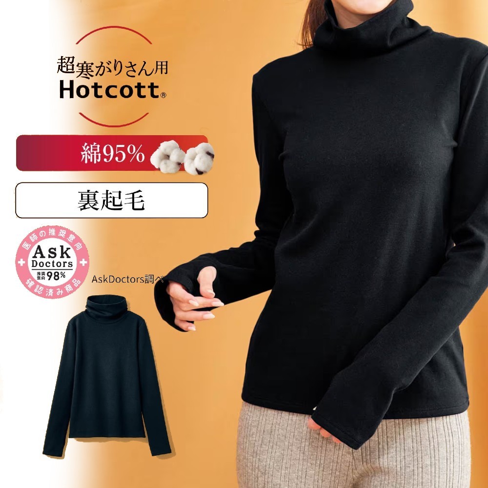 綿混あったかインナー・裏起毛タートルネック長袖レディース〈ホットコット超寒がりさん〉